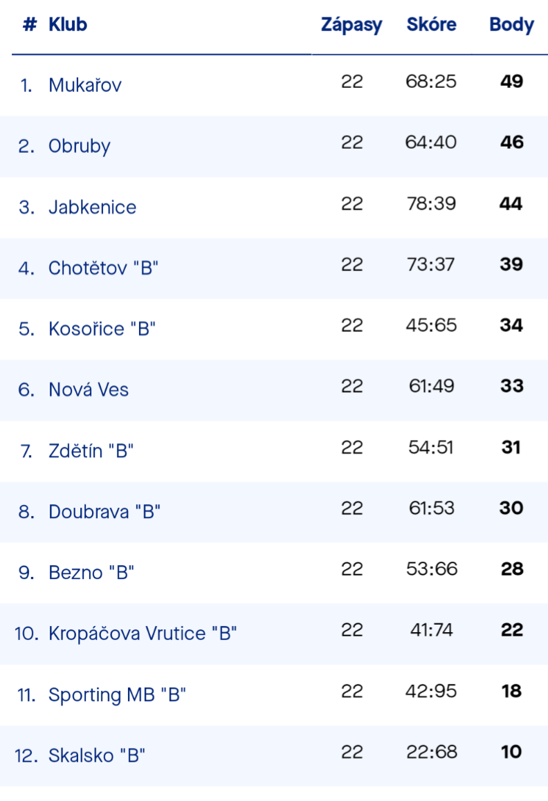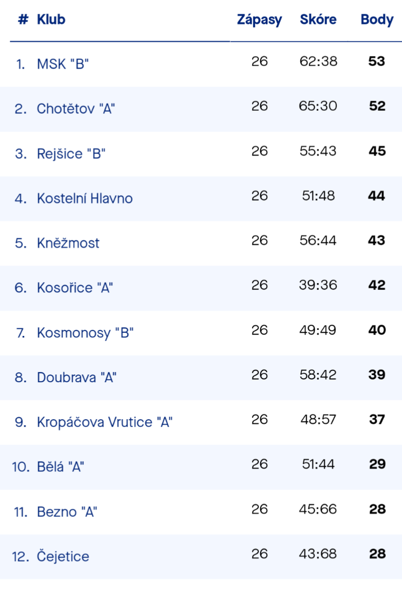 | Muži A - Okresní přebor | Muži B - 4. třída |